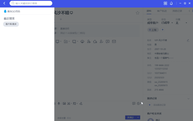 忘了客户姓名?没关系,现在工作台搜索功能现支持搜索客户库备注信息,搜索范围更全面,总能找到你的目标人物。